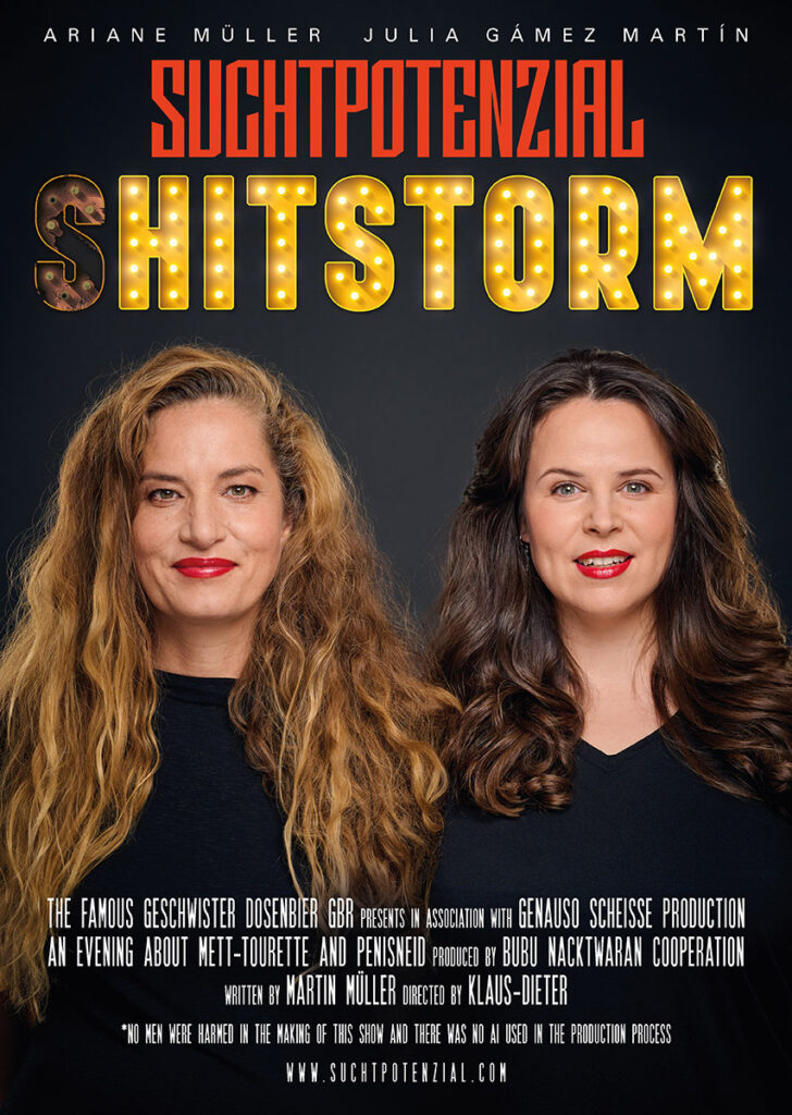 2 Frauen, 4 Programme und 12 Jahre Bandgeschichte an einem Abend. Vom Frühwerk ‚Alkopop‘ bis ins ‚Bällebad‘, über virale Videos wie ‚Mett-Tourette‘, Disney‘ oder ‚Klaus-Dieter‘, große Hymnen wie ‚Ficken für den Frieden‘ und ‚Genauso Scheiße‘, vom ‚Dosenbier‘ bis zur ‚Dumm-fickt-gut‘-Oper wird das Oeuvre zelebriert und vor allem neu kommentiert.